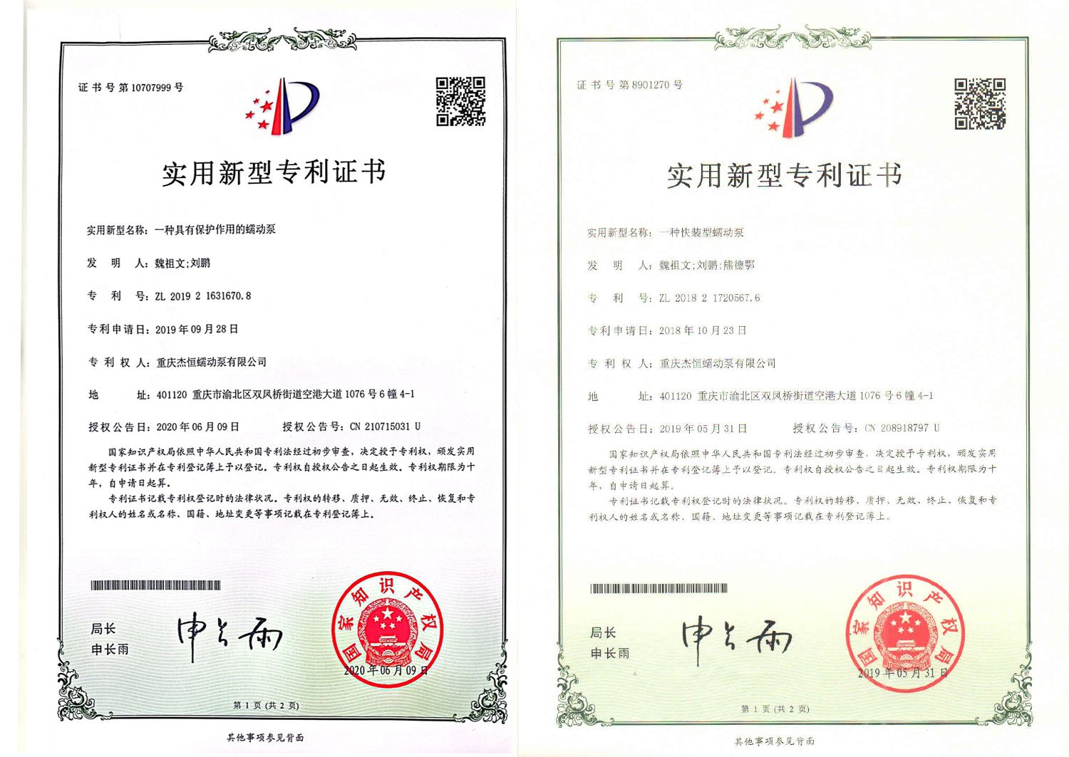 實用新型專利證書