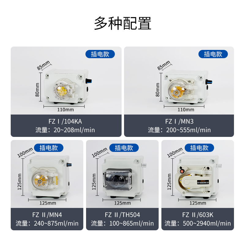 ■產品適配多種OEM蠕動泵頭,多種流量可選擇